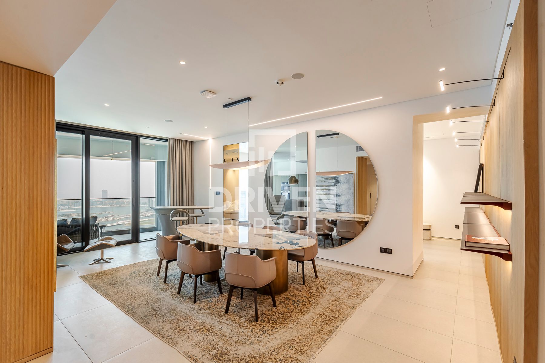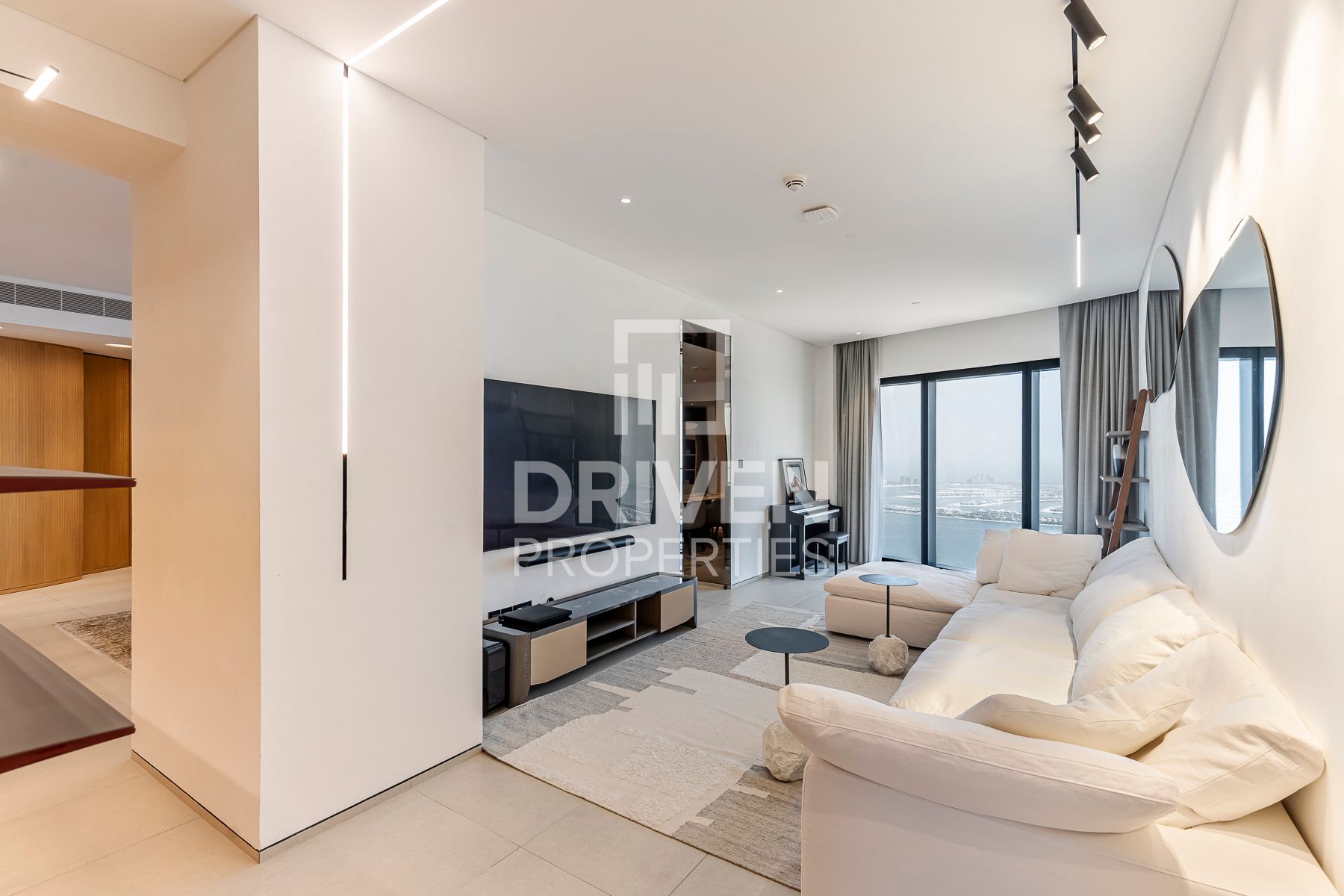 This custom unit has been created by combining a four bedroom and two bedroom apartment to make an enlarged four bedroom penthouse featuring two living rooms, all bedrooms as Suites, a large kitchen diner and panoramic views over the coast and Palm Jumeirah.