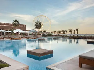 You can rent one of their private luxury cabanas, providing a haven for relaxation. Take a dip in their stunning pools, a perfect backdrop for soaking up the sun. Indulge in the finest selections of cocktails, while enjoying mesmerizing sunset views of Ain Dubai.