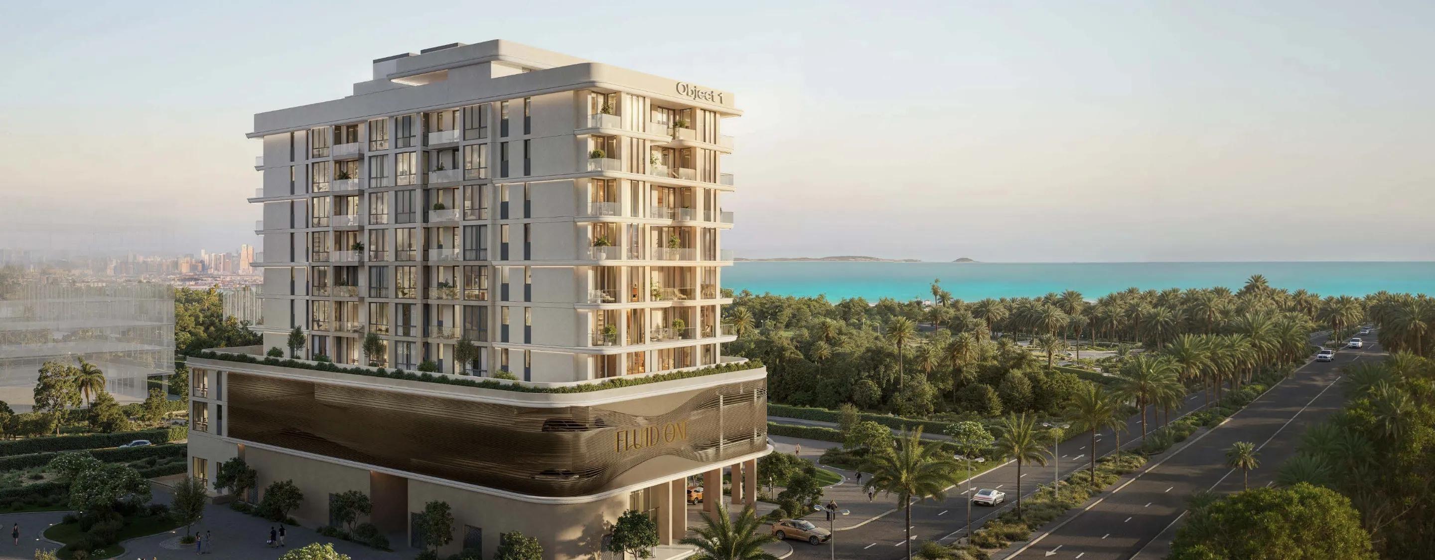 Flu1d One at Dubai Islands by Object 1 Development is a limited-edition waterfront residence offering premium 1, 2 and 3-bedroom apartments within a G+2P+8-storey structure of only 64 exclusive homes. Inspired by the fluid movement of water, its elegant façade blends light, flow, and harmony with nature.