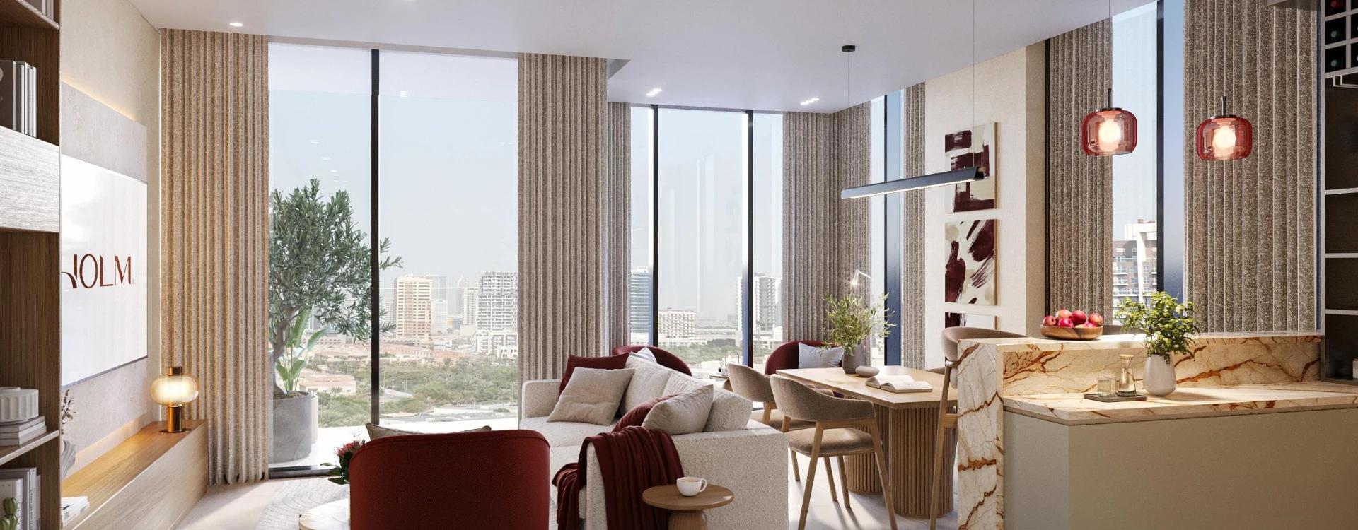 The project offers studio and 1‑bedroom apartments with open‑plan layouts, premium finishes, and fully furnished interiors, enhanced by smart‑home features. Residents enjoy curated amenities including wellness, fitness, entertainment, and communal spaces. Holm One combines urban connectivity with a tranquil community atmosphere, ideal for young professionals, couples, and investors seeking a central Dubai address.