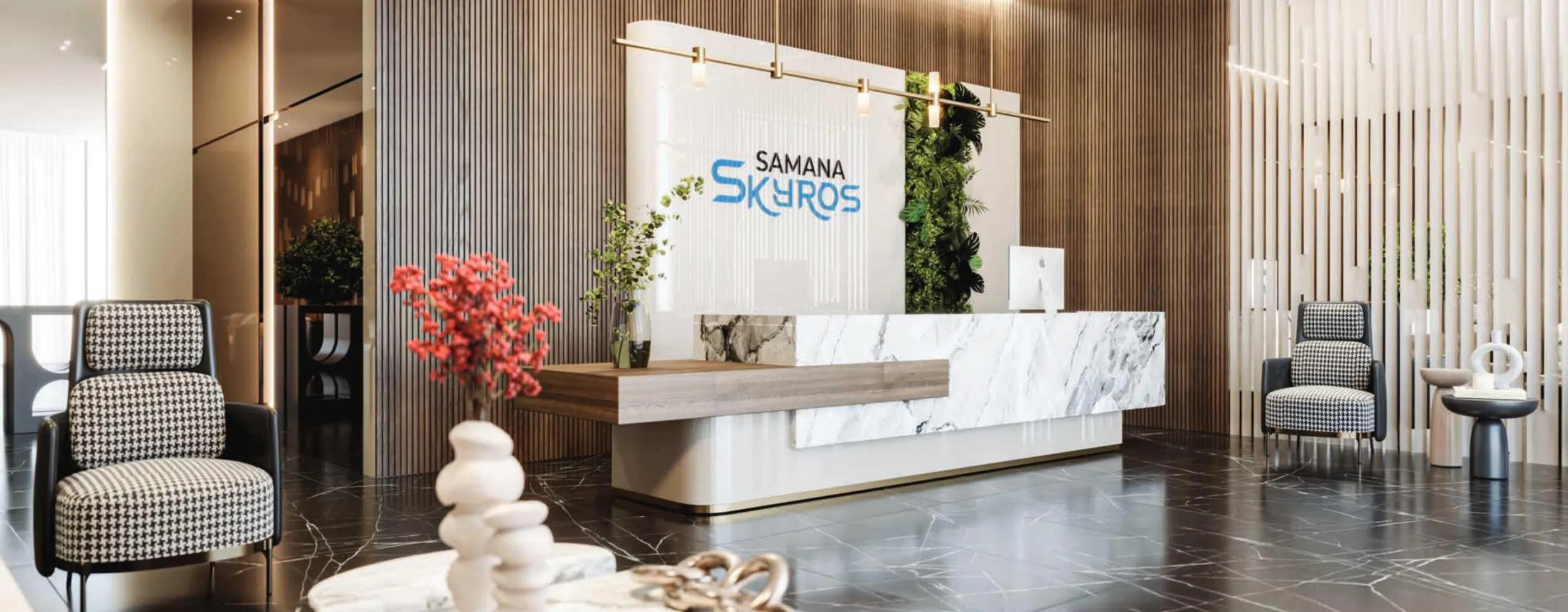 The development features exceptional amenities, including an indoor-outdoor health club, rooftop jogging track, sauna, steam room, gym, rooftop basketball court, cinema, and lounge. With serene green surroundings, smart home features, and stunning city views, Samana Skyros delivers the perfect balance of luxury, relaxation, and vibrant urban living.