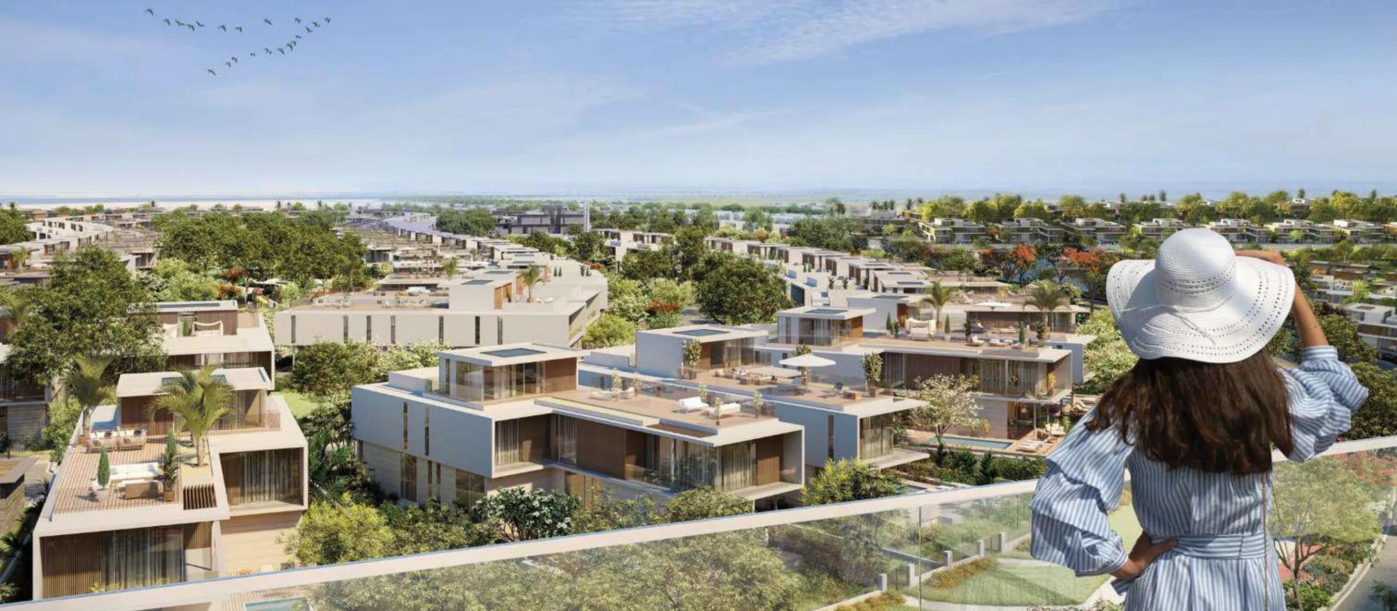 The villas feature expansive layouts, high-quality finishes, lavish interiors, and private pools, creating an atmosphere of elegance and comfort. Large windows allow natural light to flood each home while framing breathtaking views of the surrounding landscapes, canals, and sandy beach areas, offering residents a serene island lifestyle.