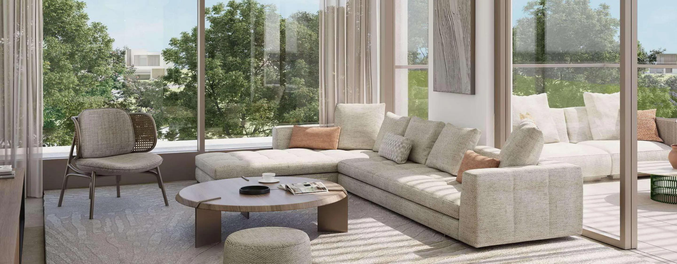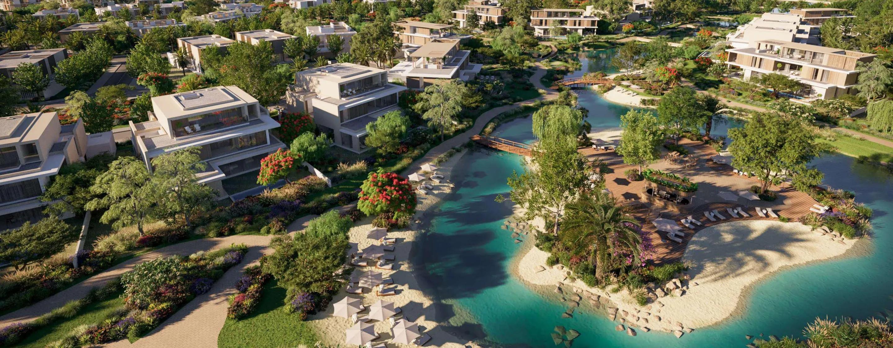 The Acres by Meraas in Dubailand offers luxurious 3, 4, and 5-bedroom standalone villas surrounded by lush greenery and swimmable lagoons. This nature-inspired community blends modern architecture with natural elements like stone, wood, and glass. Villas feature open-plan layouts, double-height living spaces, and floor-to-ceiling windows that bring the outdoors inside.
