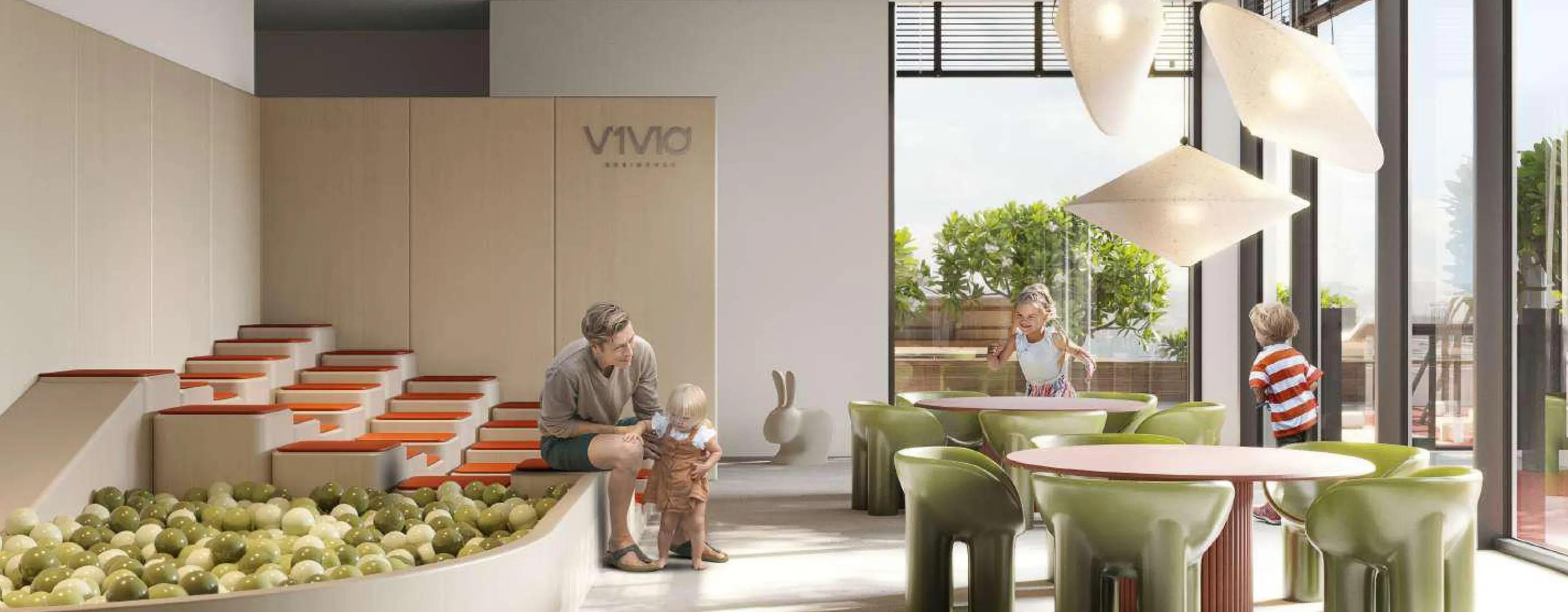 Amenities include a welcoming lobby, kids pool, pool deck, clubhouse, gym, yoga area, jogging track, outdoor sports facilities, steam and sauna, BBQ area, lounge, table-games zone, cinema, retail spaces, park areas, dedicated parking and 24/7 security. V1VID ensures a vibrant living experience with a complete range of leisure and wellness options.