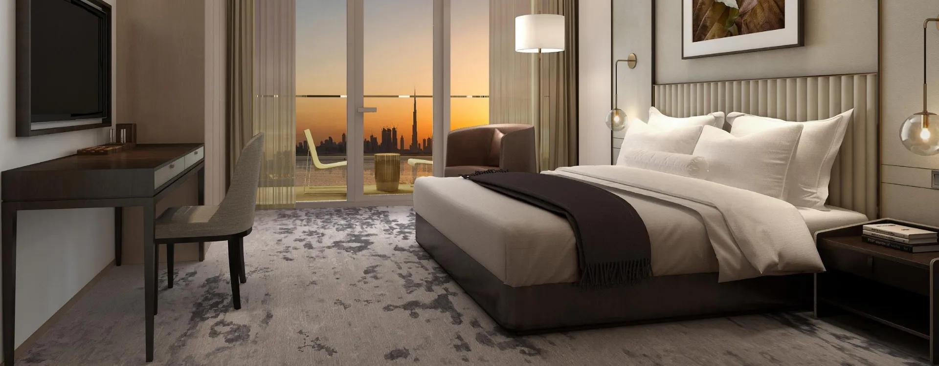 Address Harbour Point offers luxurious 1, 2, and 3 bedroom serviced apartments in the heart of Dubai Creek Harbour. Managed by the prestigious Address Hotels + Resorts, these residences provide stunning views of the iconic Burj Khalifa and the vibrant waterfront. Designed with soft earthy tones and impeccable finishes, the apartments feature expansive windows that showcase breathtaking sunrises daily.