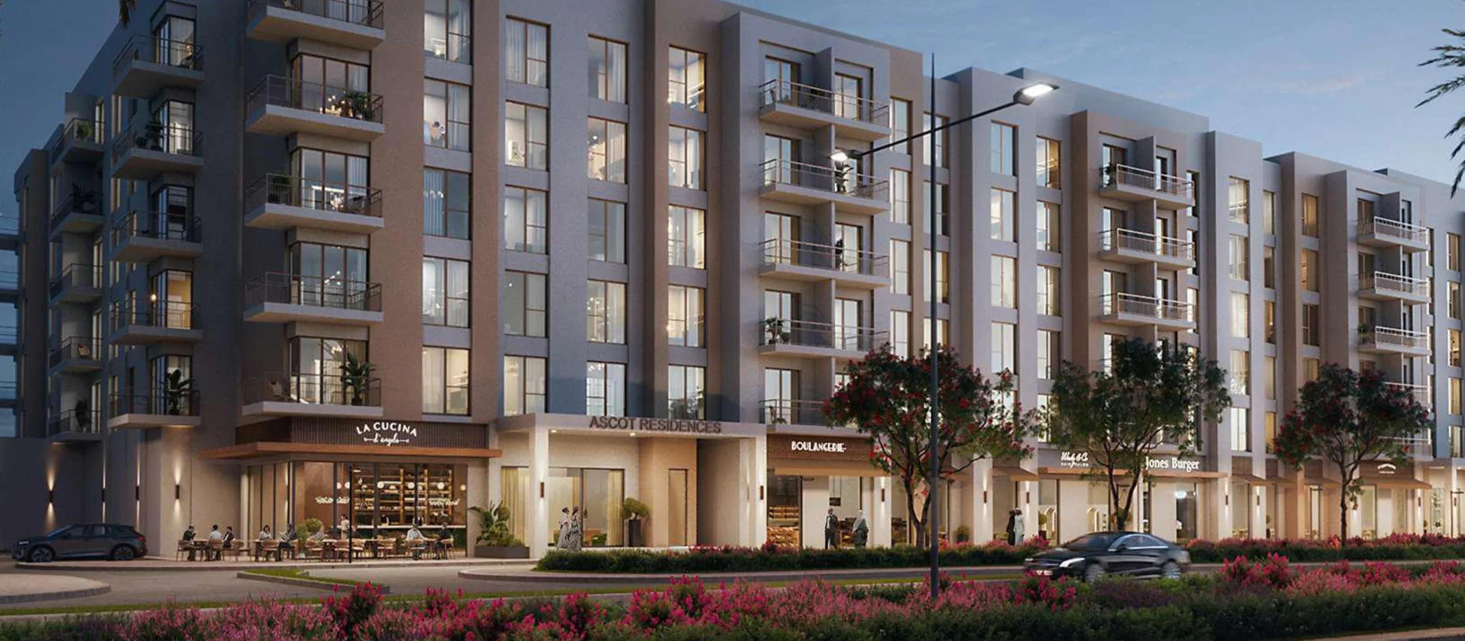 Residents enjoy a wide range of amenities, including Town Square Park, swimming pool, gym and fitness club, basketball courts, football pitch, squash, tennis and padel courts, kids’ play areas, splash pad, carousel, cycling and jogging tracks, skate park, retail outlets, restaurants and cafes, supermarkets, clinics, nurseries, mosque, and outdoor cinema. Ascot Residences combines convenience, recreation, and community living.