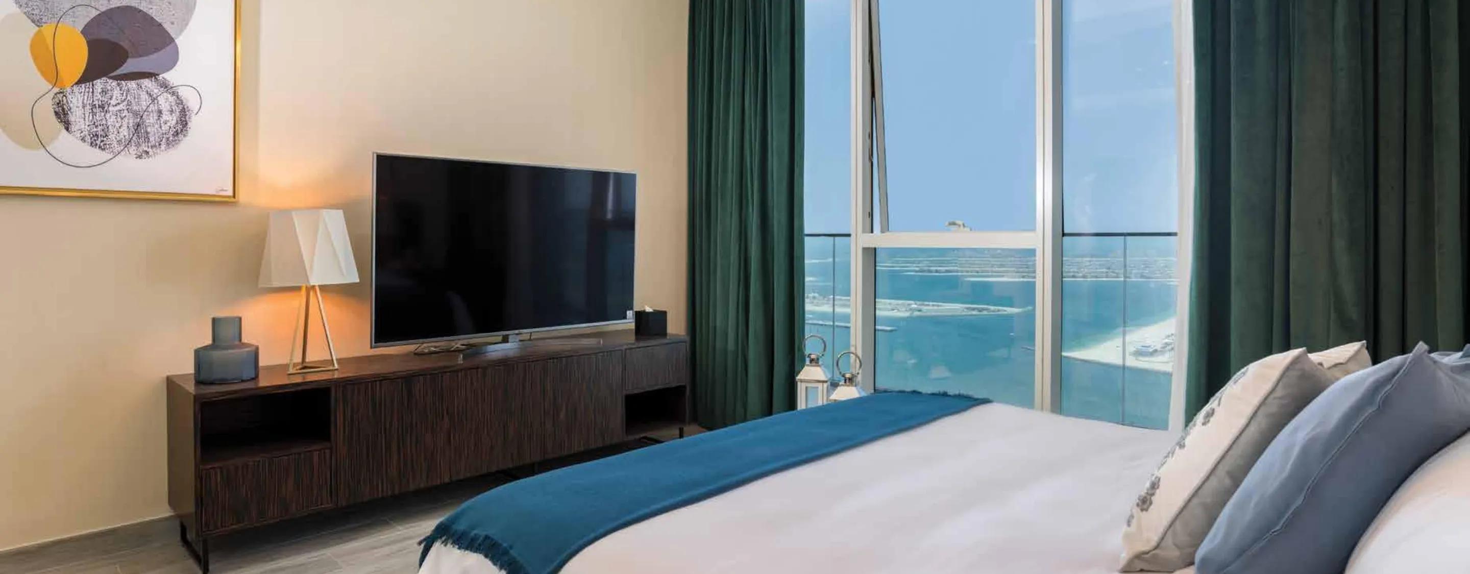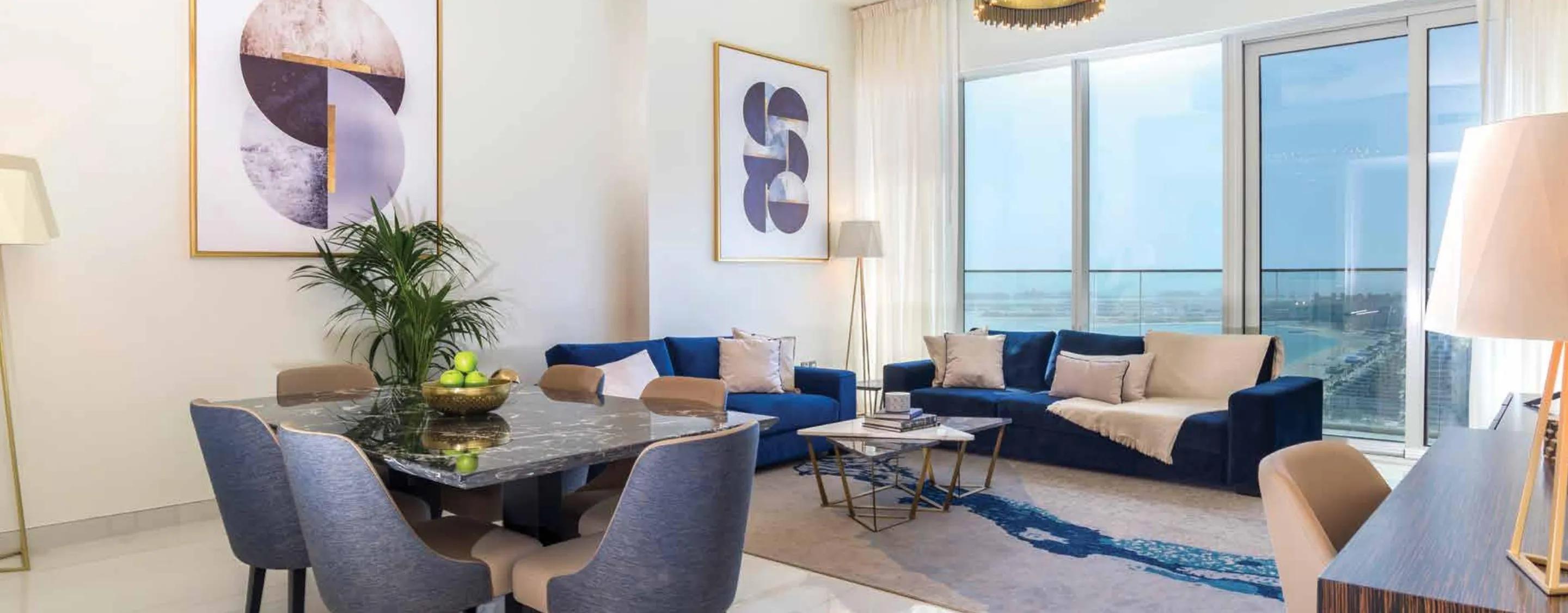 Avani Palm View Dubai Hotel & Suites by ALFAHIM Group is a luxury development in Dubai Media City, opposite Palm Jumeirah. It features 263 fully furnished 1, 2, 3 and 4-bedroom residences with open layouts, high ceilings, and panoramic windows showcasing stunning views of the sea, Palm Island, and Dubai’s skyline.