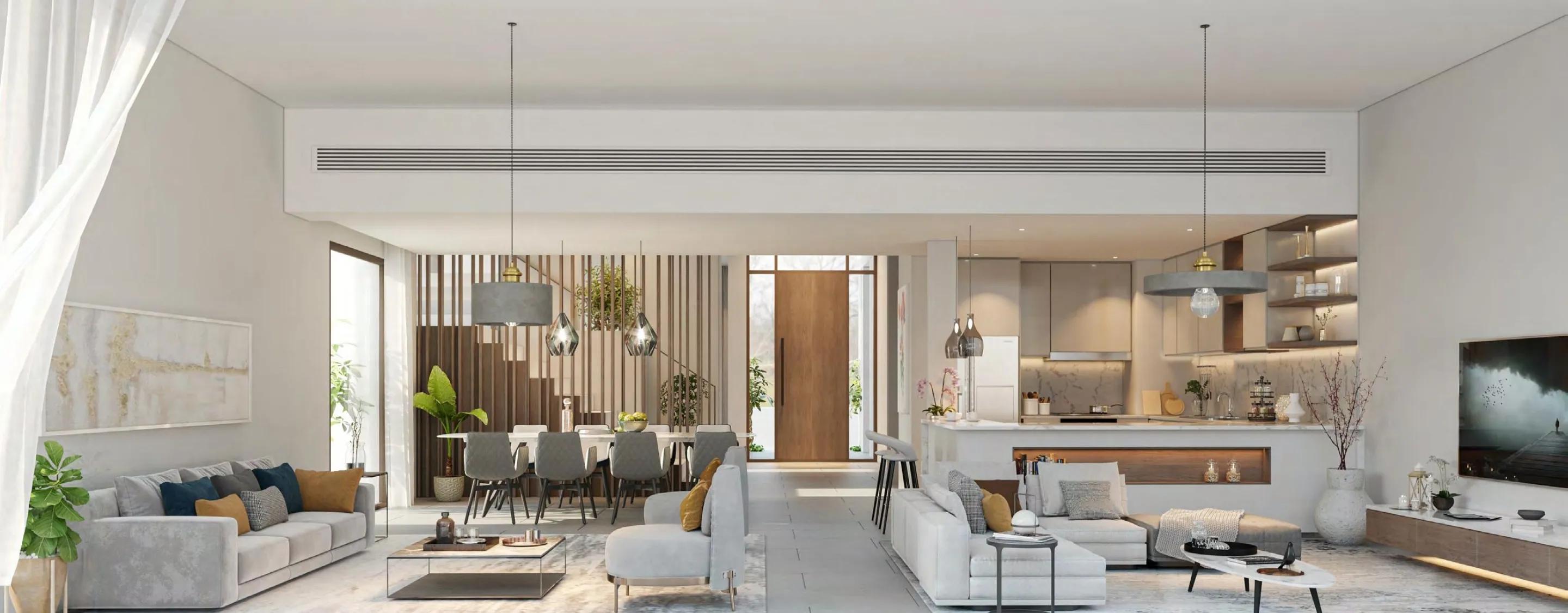 Harmony 1 by Majid Al Futtaim, located in the prestigious Tilal Al Ghaf community, offers luxurious 4 and 5-bedroom villas designed for modern living. The development includes single-storey bungalows and spacious three-storey villas, all connected to scenic parkways and trails.