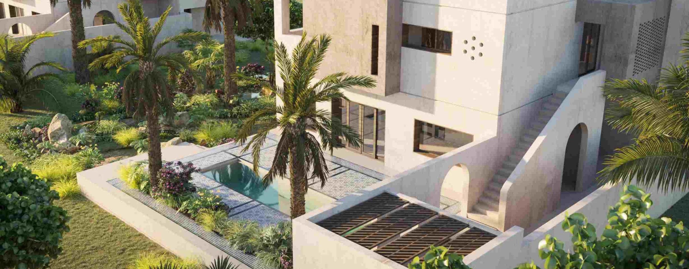 Joud Villas by Imkan Properties at Aljurf Gardens offers a refined collection of 3, 5, and 7-bedroom villas inspired by traditional Arabic architecture. Designed with courtyards and majlis, the homes create intimate and family-friendly spaces that blend cultural charm with modern elegance. Surrounded by lush greenery, water features, and natural elements, the community ensures a serene retreat while being strategically located between Abu Dhabi and Dubai.