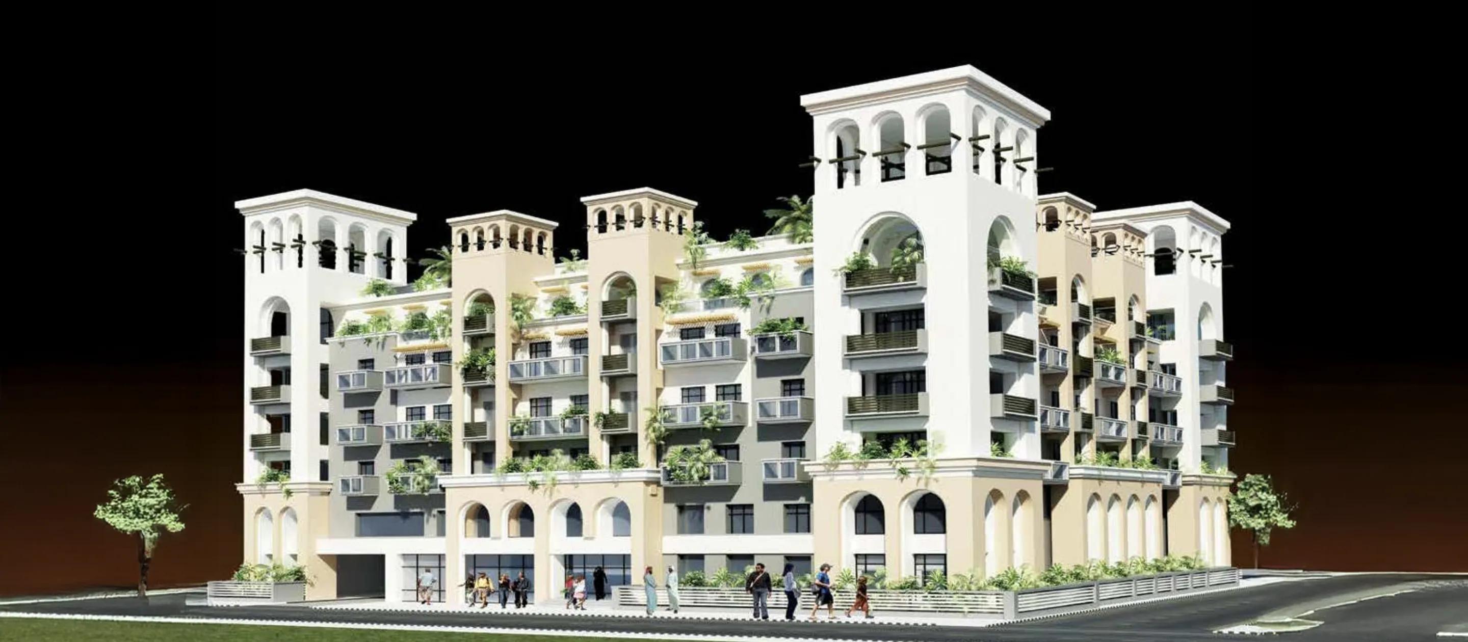 The apartments include fully equipped kitchens, fitted wardrobes, powder rooms, spacious lounges, dining areas, balconies, and bedrooms with ensuite bathrooms. Plazzo Heights combines modern design with comfortable living in a vibrant Dubai community.
