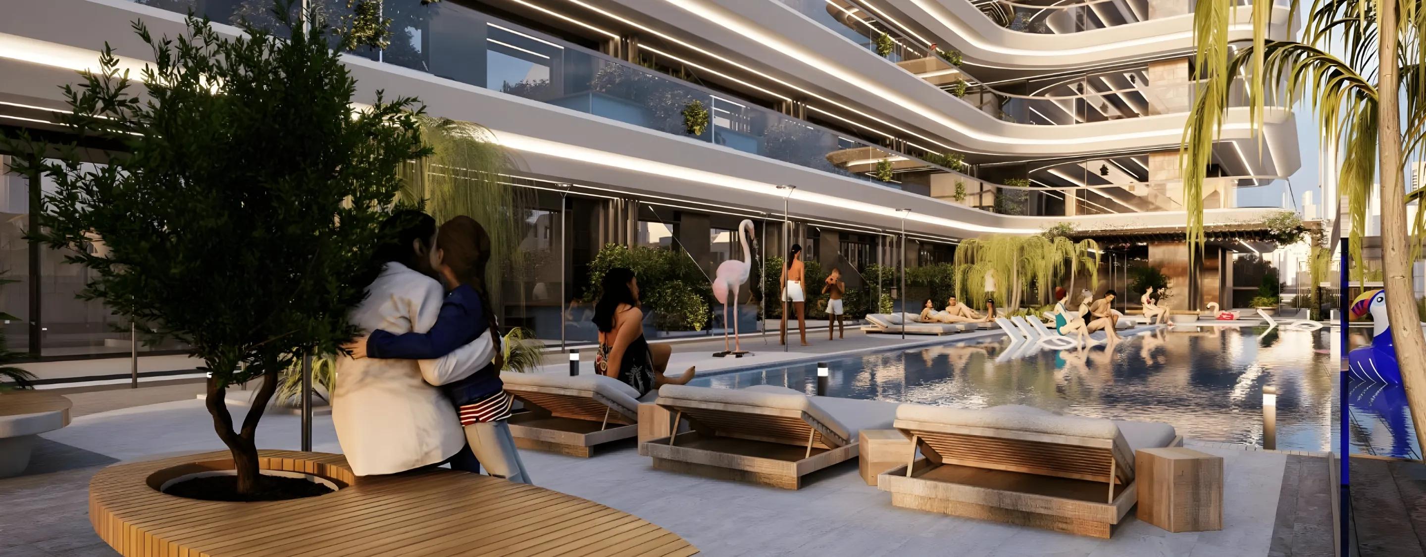Residents can enjoy exceptional amenities, such as an infinity pool, leisure pool deck, kids’ play area, private pools, health club with indoor and outdoor gyms, sauna, steam room, outdoor cinema, BBQ area, and valet parking. Miami redefines urban luxury, delivering a lifestyle of relaxation and sophistication in the heart of Dubai.