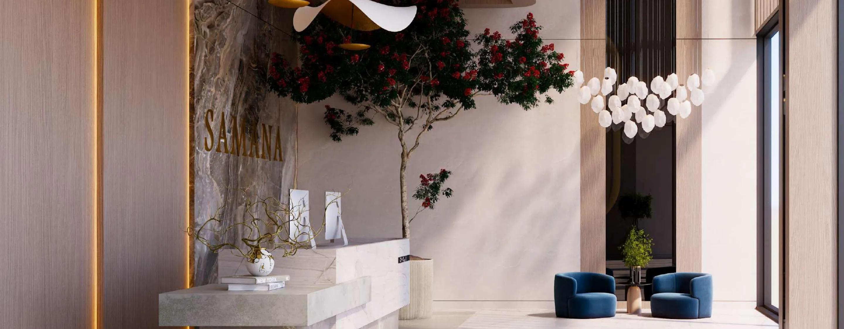Samana Resorts at Dubai Production City by Samana Developers offers luxurious studios and 1-2 bedroom apartments designed for comfort, privacy, and relaxation. This resort-inspired development features a contemporary facade blended with natural elements, creating a serene living environment.