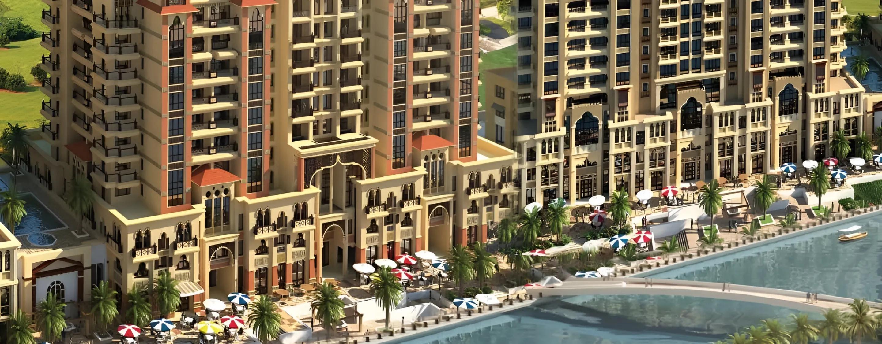 The Spanish Tower is part of the Canal Residence West complex in Dubai Sports City, which includes five buildings: Mediterranean, European, Venetian, Spanish, and Arabian. Developed with architectural expertise from Art Consultants Dubai and Diar Consult, the building was completed in 2020. Spanish Tower stands 14 storeys tall and houses 192 residential units, including studios, 1, 2 and 3 bedroom apartments.
