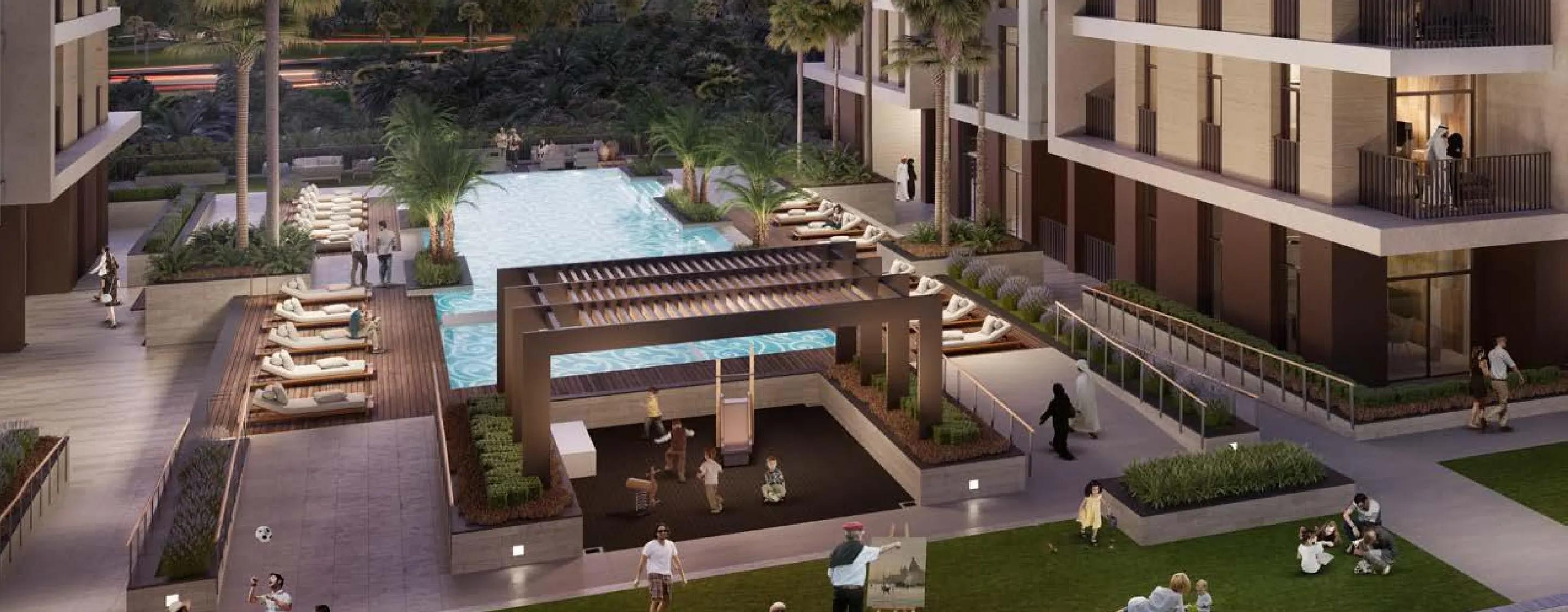 Each home features modern amenities like built-in wardrobes, laundry cabinets, and flexible storage solutions. The striking design includes a single podium base, creating a unique exterior. Residents enjoy vibrant city life nearby, with access to skydiving, indoor snowboarding, international festivals, luxury dining, and diverse shopping experiences in Dubai’s premier destinations.