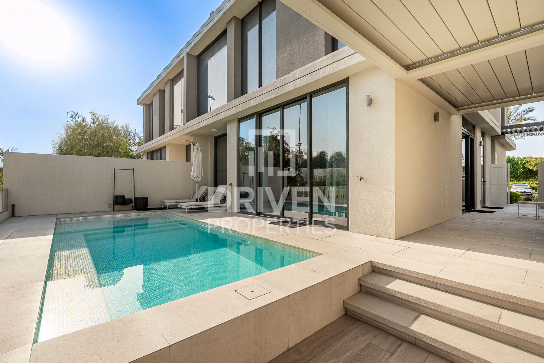 Exquisite outdoor space complete with a climate-controlled swimming pool and integrated jacuzzi for year-round indulgence.